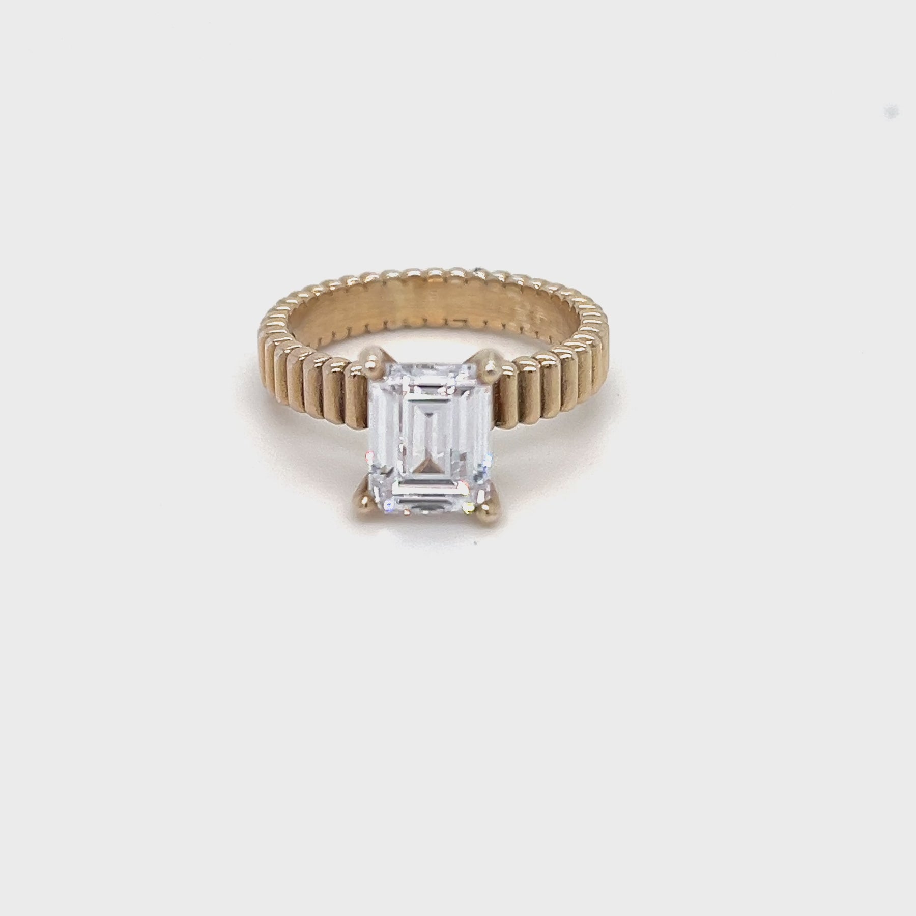 14k Thick Engagement Ring with Emerald Center Stone with Textured Detail.