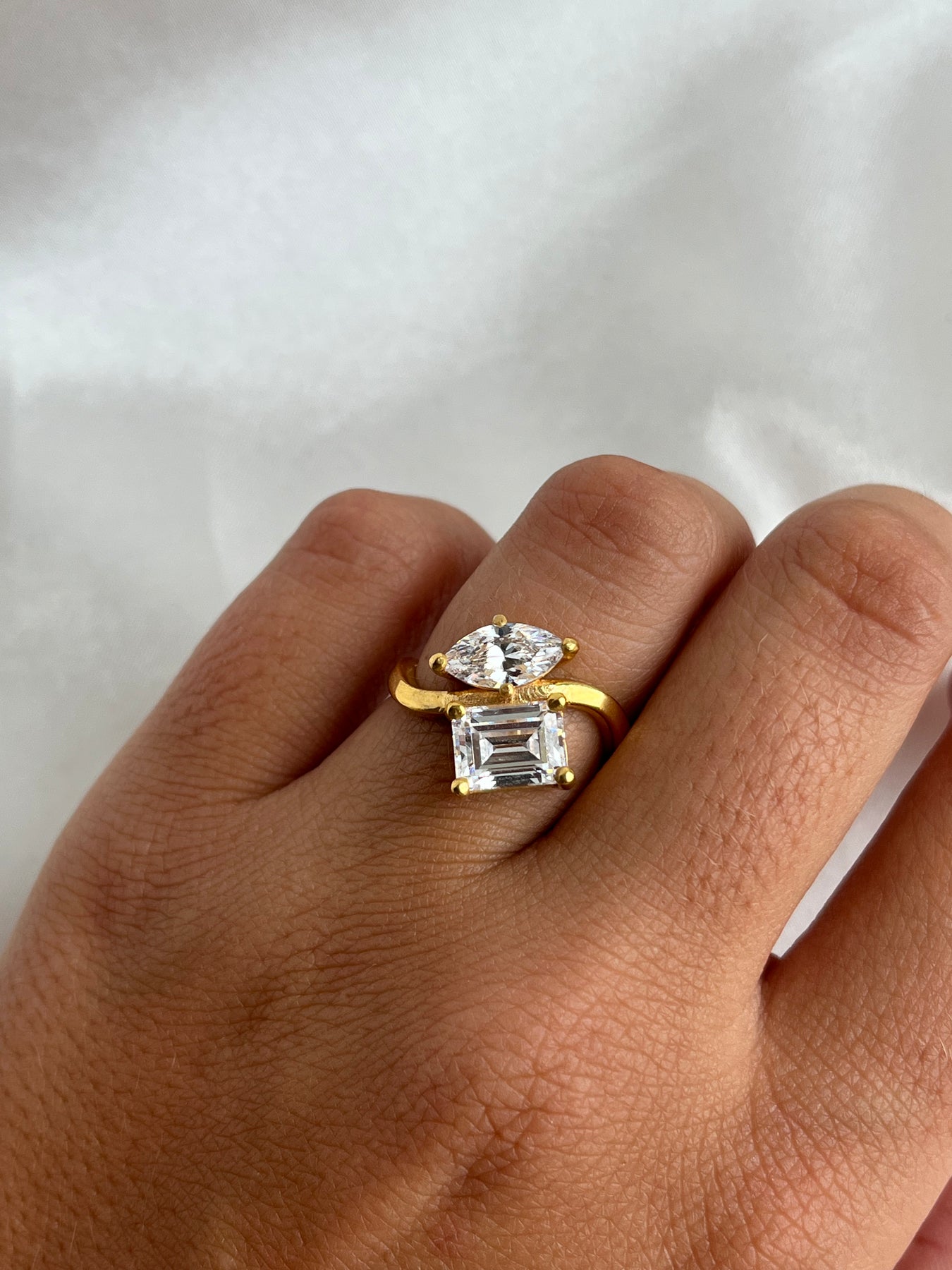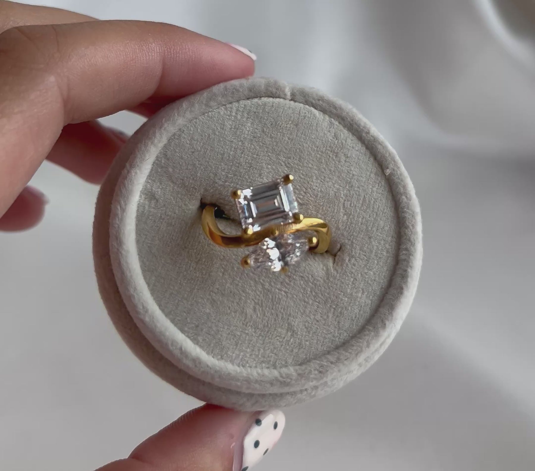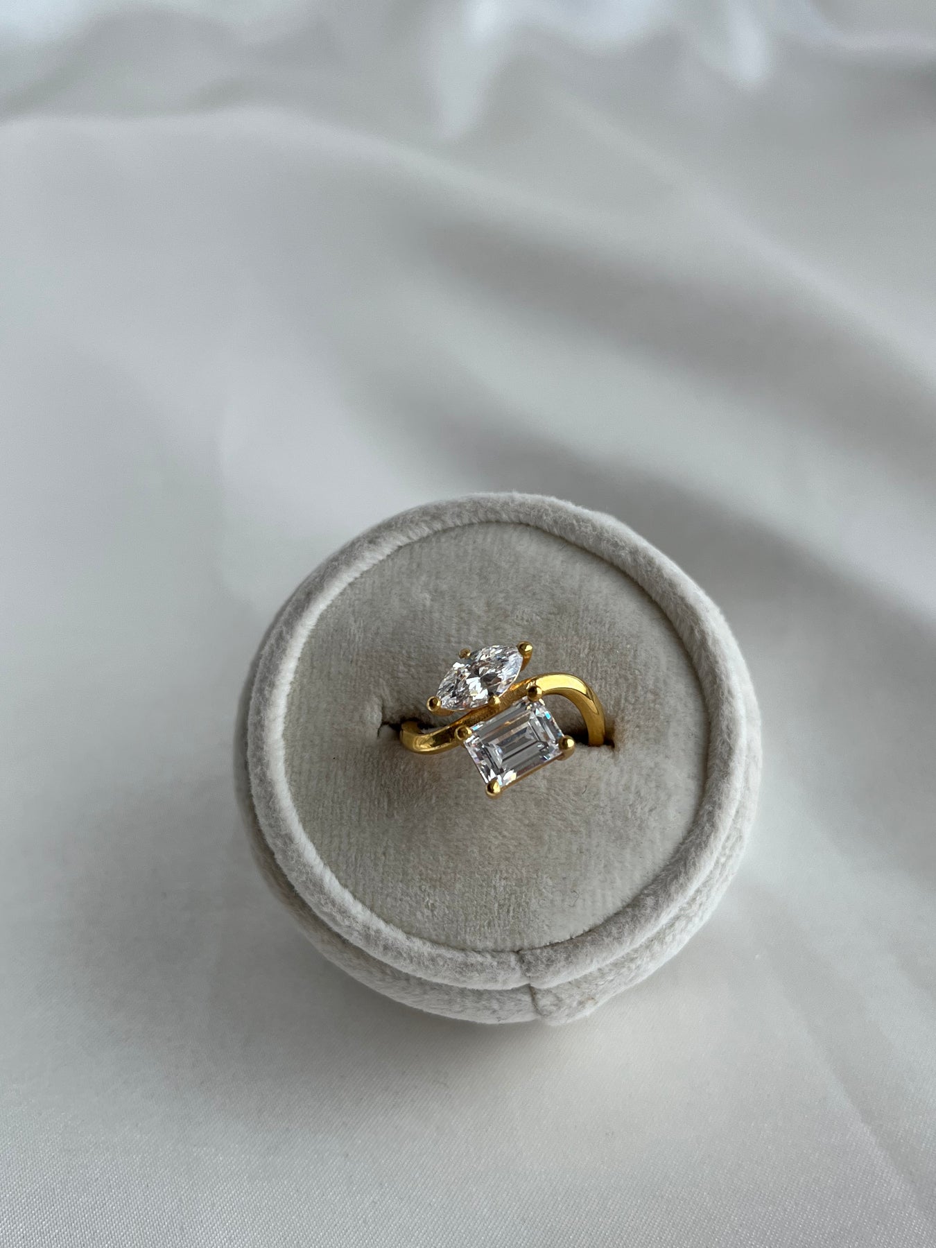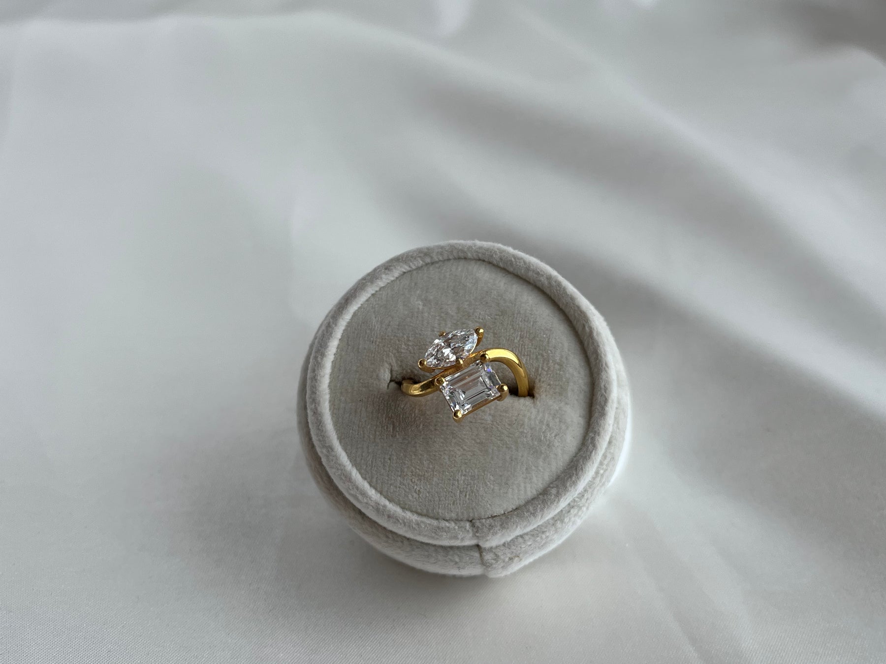 Shown with an Emerald Cut Diamond and Marquise Cut Diamond